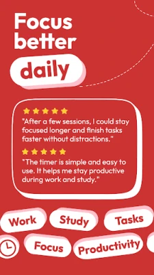 Pomodoro Timer for Focus, Productivity, Work & Study is a powerful and simple pomodoro timer designed to improve focus, boost productivity, and help you stay consistent with the Pomodoro technique.