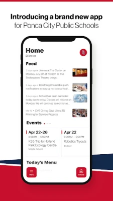 NEVER MISS AN EVENT The event section shows a list of events throughout the district. Users can add an event to their calendar to share the event with friends and family with one tap.