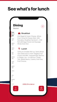 CAFETERIA MENUS Within the dining section, you'll find an easy to navigate, weekly menu, sorted by day and meal type.