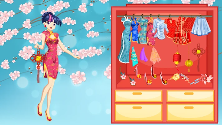 When you’re done you get to go to the next stage of the dress up girls game. Go with the perfect outfit by choosing the right clothes and accessorize with a new hairstyle, a handbag and even a chinese lantern.