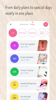 Mark the places you’ve traveled on the map and organize schedules, anniversaries, and D-Days all in one place.