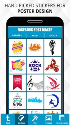 Post Maker provides hand picked backgrounds, textures, stickers and text (fonts) specially for poster making to create Post, Cover Page and Poster like professionals.