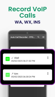 PPG Auto Call Recorder (ACR) records all incoming and outgoing calls, including VoIP calls from apps like WhatsApp, Telegram, and more.