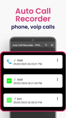 PPG Auto Call Recorder (ACR) is a powerful app for recording all your calls. Automatically record both regular phone calls and VoIP calls from apps like WhatsApp, WeChat, Facebook Messenger, Instagram, and Telegram. Never miss an important conversation again.