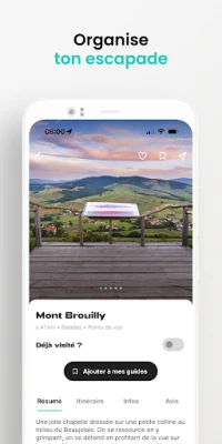 Retrouve toutes les informations pratiques des spots (photos, descriptif, horaires, prix, temps de trajet, randonnée à proximité) pour planifier ton voyage. Ajoute les lieux que tu souhaites visiter dans ta liste de favoris pour les retrouver plus tard !