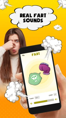 Make your phone a fart sound generator to make your friends uncomfortable with the fart noise timer or to brighten up the environment with laughing.