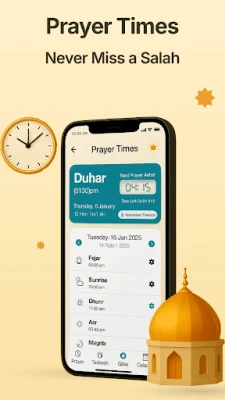 Never miss a prayer again with accurate azan time notifications and location-based prayer times for every salah.