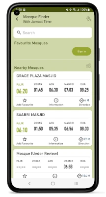 This is one of the key and unique feature of the app. The app finds nearby mosques based on user location. Not just this, it also helps to provide the Jamat Time of any prayer in the nearby mosques. Users are welcome to contribute for the data update in the live app