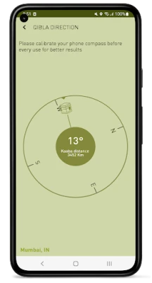 The app makes use of your device's compass to show you Qiblah direction in addition to other directions of East, West etc