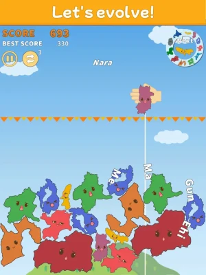 - When the same prefectures are attached to each other, they will evolve and your score will be added!