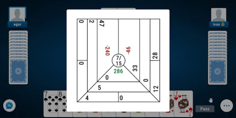 • NO BOTS. Play Preferans online with real people from all over the world. Chat, send emoji and make new friends.