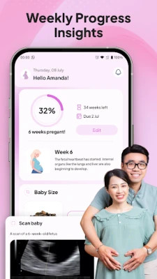 Track your pregnancy week by week and learn how your baby develops at each stage. Clear explanations and visual size comparisons make every milestone easy to understand and exciting to follow.
