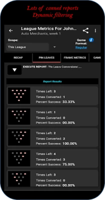• All frame-level reports can be executed on Baker format games and/or mid-game substitute bowlers, giving individual frame statistics per bowler