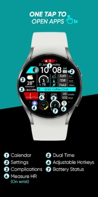 β π Steps - Distance - Calories - Battery - Heart rate (On wrist) - 2 custom complications - Dual time - Days in year - Calendar - 3 shortcuts - Unread notification count