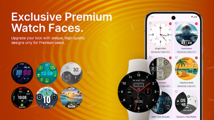 • Free Watch Faces: Start with free designs, upgrade for premium access