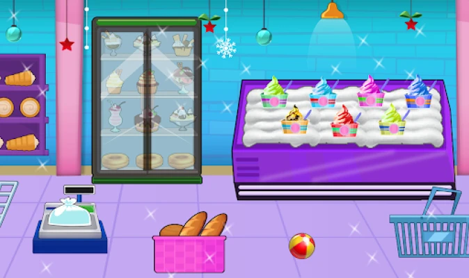 Explore this supermarket shopping game and sell your best items in pretend grocery store shop
