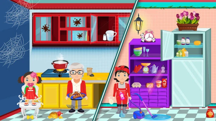 Design and decorate 5 different cute🥰😋 pretend town home 🏡 rooms like the lounge, washroom, kitchen, garden, mom and dad room in both family neighborhood homes. Explore them, interact and touch anything you want. Ready your band 👩🎤👨🎤🎸🥁 in the pretend home lounge and play the crazy music. Let’s get back to our childhood days. Use your imagination and creativity through so many ways. Explore all the rooms of the doll house town game. We have put your imagination into this virtual game. Play 😊😊 as the best expert home interior designer.