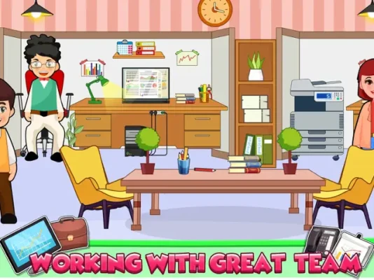 Pretend play as an employee to work on office tables. Interact with laptops, printers and other stuff placed on the table. Do your job by dealing with other office co-workers & colleagues. Enjoy the role of an employee, enter the executive room and work like a manager to perform multiple fun tasks and duties. Do meetings and assign different tasks to employees to manage the whole office perfectly. Achieve all tasks to be the best employee in this town office.