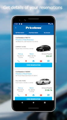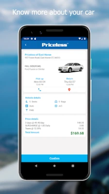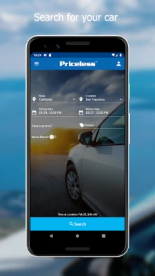 What Priceless car rental app offers you: