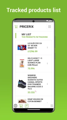 Pricerix is a price tracker designed to monitor prices across online stores worldwide, including those selling clothing, groceries, electronics, software, and more. Simply provide a link to the product page that includes its name and price. Open the link using the built-in browser in Pricerix. If needed, select additional options on the page, such as color, size, or configuration. Then, click the button in the bottom right corner to start tracking the product's price.