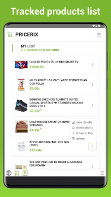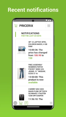 Depending on your preferences and selected settings, Pricerix can send push notifications for: