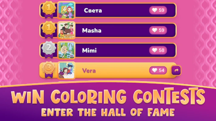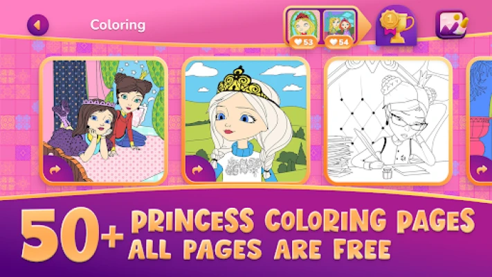 Color princesses, solve puzzles and join coloring contests —