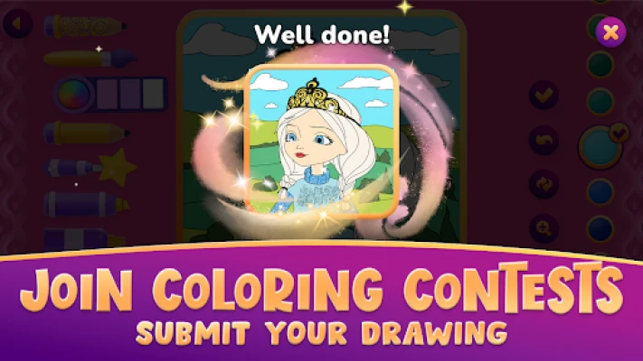 Join princess coloring contests and show your drawing skills.