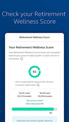 • Learn from tools like our personalized Retirement Wellness Score to see how you’re tracking toward your retirement goals