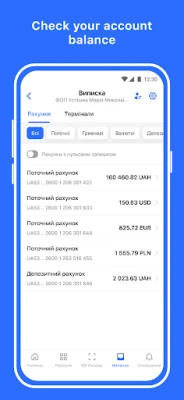 • Tax payments: automatically receive data from the State Tax Service, pay taxes, fees, and other mandatory payments. Activate payment deadline reminders to pay on time.