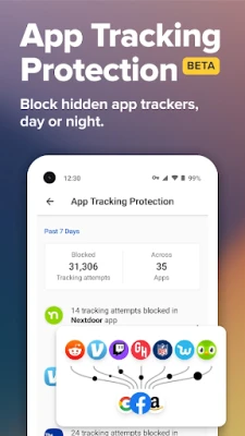 Protect Your Privacy in Other Apps: Block most hidden app trackers in other apps day or night, and prevent 3rd-party companies from invading your privacy with App Tracking Protection. This feature uses a VPN connection, but is not a VPN. It works locally on your device and does not collect personal data.