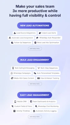 Bulk Calling & Messaging | Multi-Step Sequences | WhatsApp Campaigns | Auto-Personalised Templates | Media-Rich Sales Content | View & Interest Tracking