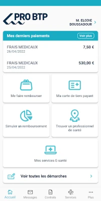 - Vos derniers remboursements, le détail de vos garanties, votre profil… et bien plus encore : visualisez toutes vos infos en quelques taps.