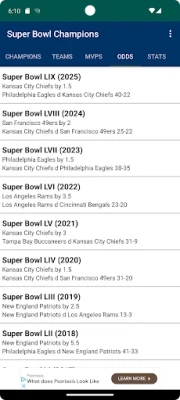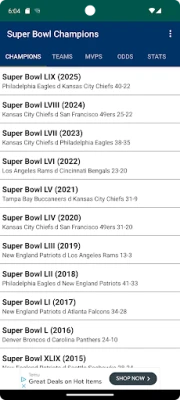 The Pro Football Champions is the must-have App for any NFL football and Super Bowl fan. Featuring winners and scores from all Super Bowls by year dating back to 1967. Have the complete Super Bowl history at your fingertips. Just look at what you get with the app: