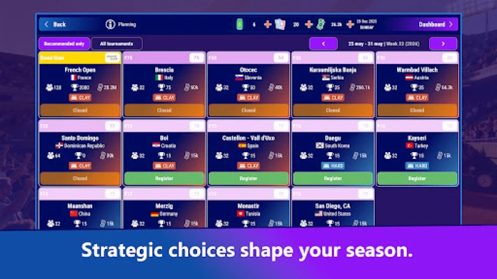 Create a tennis player and build a complete tennis career from early qualifiers to the highest level of the professional tour. Compete in realistic tennis tournaments, manage preparation on and off the court, and make strategic decisions that define your success in this tennis manager and career game.