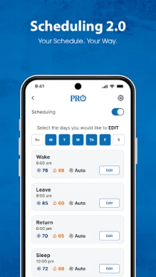 Redesigned for ultimate simplicity, efficiency, and control. Easily add and manage your thermostat with a seamless setup process, adjust temperatures through an intuitive interface, and create schedules with just a few taps. Stay connected and comfortable from anywhere, save energy effortlessly, and enjoy complete peace of mind. Elevate your thermostat experience with PRO1 Connect today!