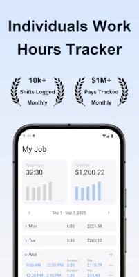 Calculate hours and pay, access all your logs, and export your last 7 days — completely free, no ads. Unlock full export history, custom themes, and advanced insights with a Pro subscription.