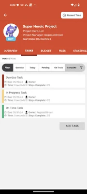Hero Card: The hero card is a place for you to track your own performance as a project manager. How many of your projects were completed on time and under budget? See that information at a glance on the Hero Card.