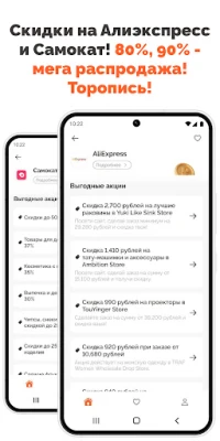 Приложение также предлагает промокоды сервисов доставки еды и ресторанов: