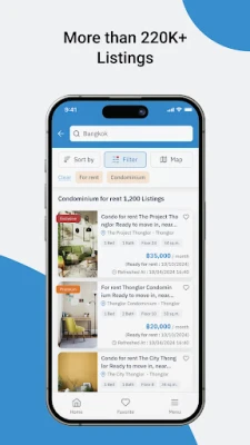 The Application covers all properties, condos, houses, land, and others for sale and rent in all locations in Thailand.