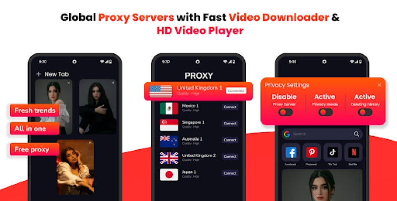 Web Proxy Browser is designed for simplicity and security. It protects your online activity by routing your connection through secure proxy servers - keeping your data private and your browsing safe, even on public Wi-Fi. Just open the app and browse freely - we handle the privacy.