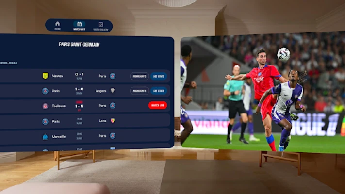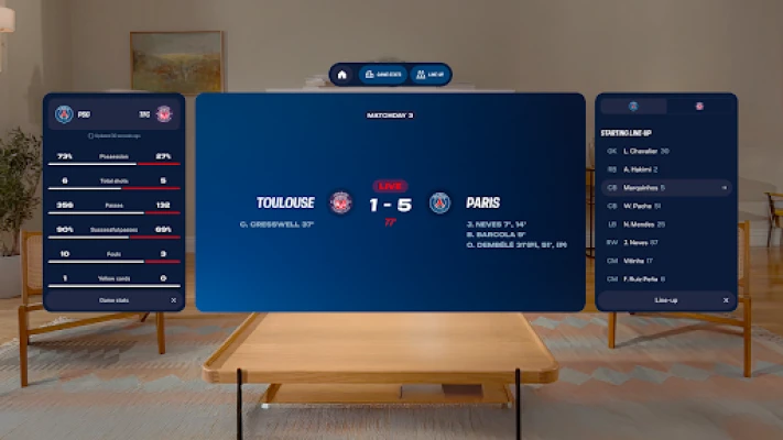 - Broadcast feed: Watch PSG home matches live inside the app, with an XR-optimized viewing experience that brings you closer to the pitch.