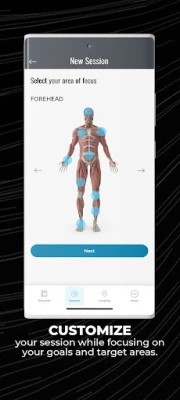 Customize your Pulsing sessions while focusing on your goals and target areas. The anatomy chart helps you get a quick start to full-body and focused Pulsing sessions.