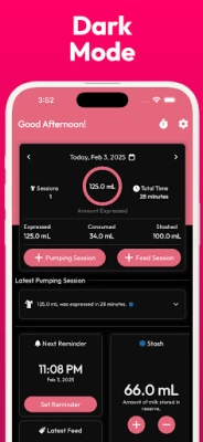 Customizable Reminders: Set personalized alerts to remind you when it's time for your next pumping session, ensuring you maintain your schedule.