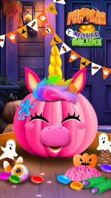 Make Spooky and Fun Pumpkin creations and express your Ghoulish side. 300+ Halloween Themed Items! Create endless Halloween scenes with 20 Backgrounds, 50+ Pumpkin Shapes and Colors, Scary Faces, Glowing Eyes and Mouths, Funny Animal Noses, Glasses, Stems, Wigs, Candy, and Spooky Décor.