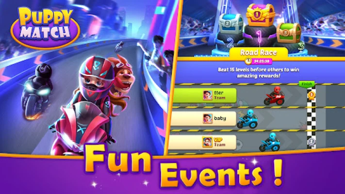 What are you waiting for? Walk into the house with cute pets and play now! Fun match-3 puzzles, challenging tasks, powerful boosters and endless fun are calling you in Puppy Match.