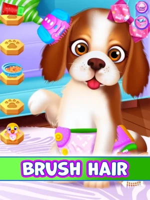 Level 2: Brush the puppy dog, change diapers, feed dog food and play!