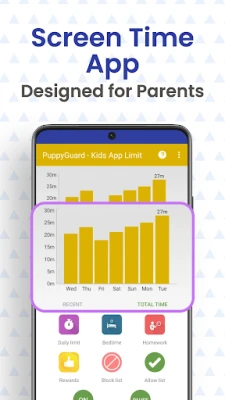 PuppyGuard is a free, easy-to-use screen time management app for Android that helps parents control how and when their kids use their devices. With powerful tools like daily screen time limits, app-specific time controls, scheduled app blocking, usage reports, and reward-based access to games, PuppyGuard makes it simple to reduce distractions, encourage learning, and build healthy digital habits. Whether you want to block certain apps, allow only educational tools, or set break reminders to protect your child’s eyes, PuppyGuard puts you in full control—all protected with a secure PIN.