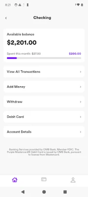 Purple is a financial technology company, not a bank. Banking services provided by OMB Bank, Member FDIC. The Purple Mastercard Debit Card is issued by OMB Bank, Member FDIC, pursuant to license by Mastercard International Incorporated. Mastercard is a registered trademark, and the circle design is a trademark of Mastercard International Incorporated. Spend anywhere Mastercard is accepted.