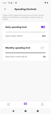 Take control of your spending. Spending controls let you set daily, monthly, and category-specific limits. They put you in charge of how much you spend, when you spend it, and where.