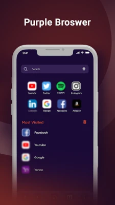 Features: - Purple Browser provides Firewall that protects everything you do online, even outside the Purple Browser. - Private window, tracking Protection. - Free built-in Adblock - Saves data and battery - Private bookmarks - Recent and private tabs - Blocks adult websites - Script Blocker and many more...